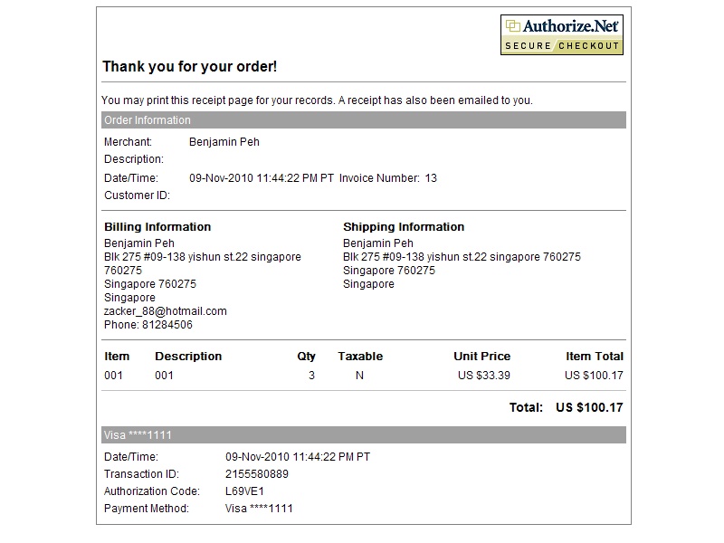 An error occurred while trying to report this transaction to the merchant. An e-mail has been sent to the merchant informing them of the error. The following is the result of the attempt to charge your credit card.