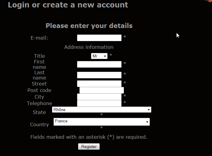 My problem is that when I click next on the cart page I am taken to the Login or create new account page (presumably the login_address part). when I enter the details and click register, the same page reloads with the information I entered being kept, but does not progress me to the next page.