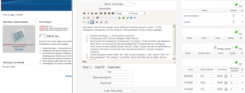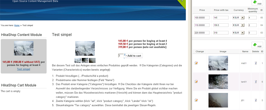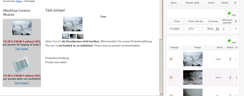 Short: complex products (services), only one product description (excluding n * x "... If, then,?") and selectable (by customer) conditions at the front-end. With HikaShop it is possible.