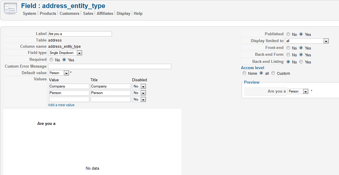 i would like to allow user to choose if address is company address or personal/individual.