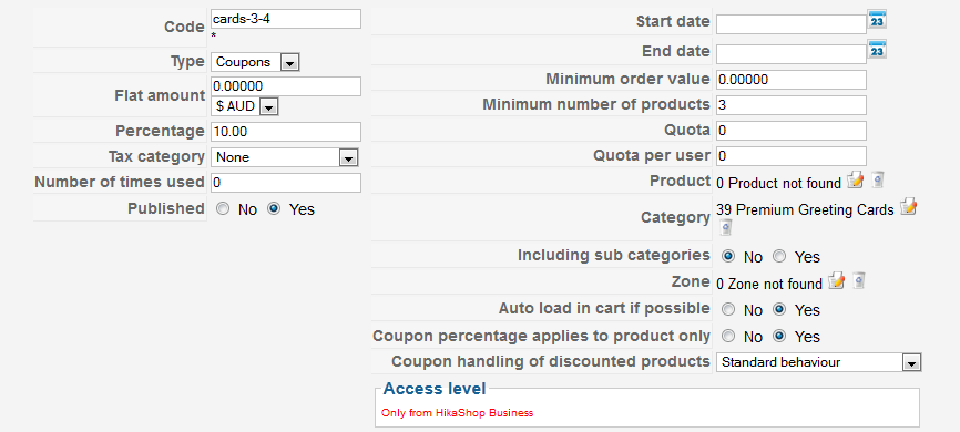 OK, installed the essential version. Setup a coupon like...