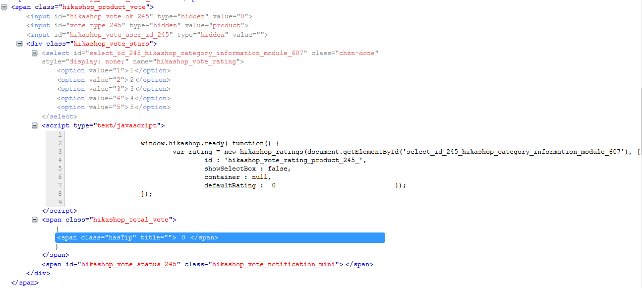 echo hikashop_getLayout('vote', 'form', $params, $js);