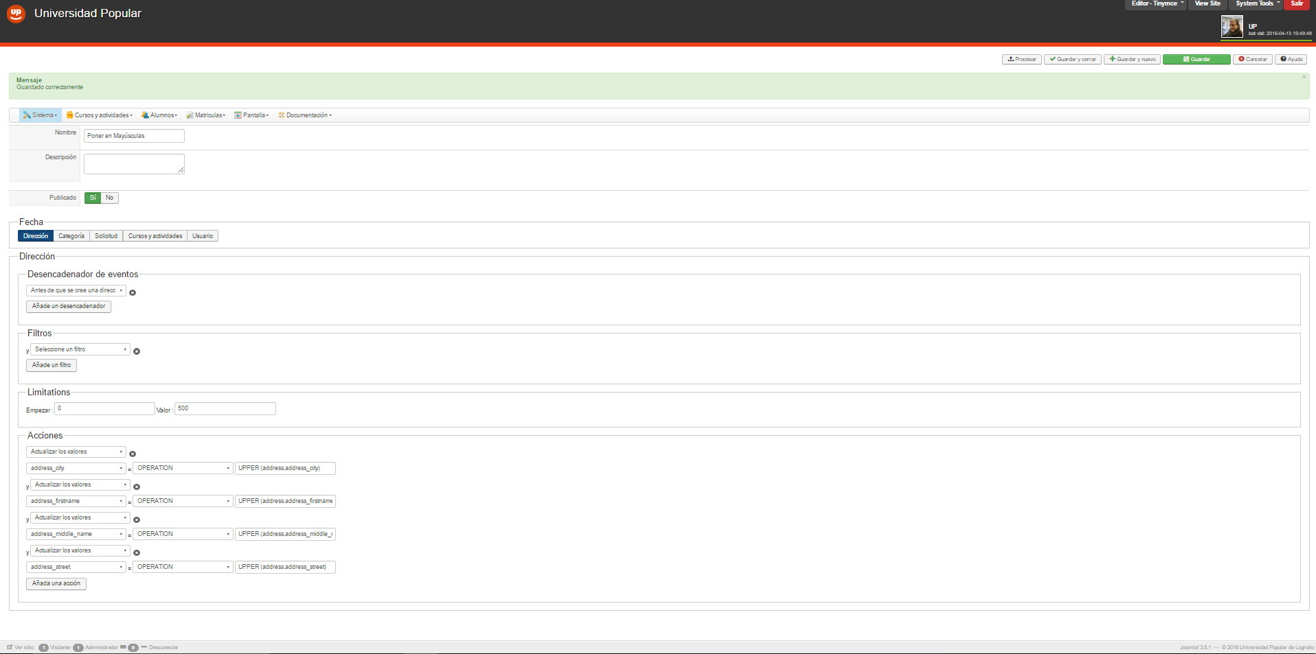 On a side note, it is now possible to add validation controls on the custom fields of the address/user forms with the "regex check" field of the custom fields.