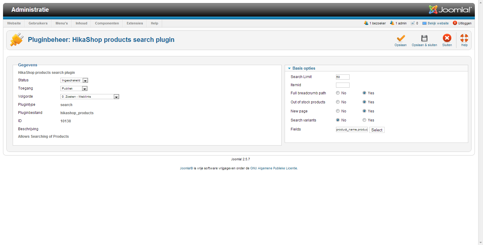 Configure the Hikashop search plugin