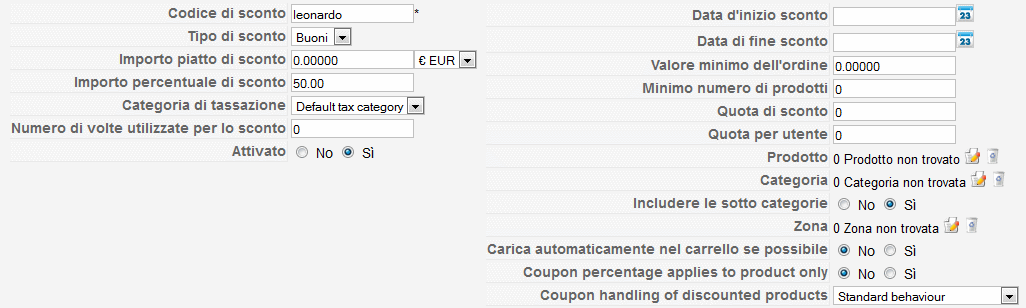 In both cases, I'm checking "Coupon percentage applies to product only" to yes because the discount should be applied only to the product into the selected category or variant.