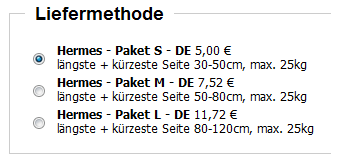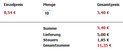 My shipping method 1 17,76 € (14,85 € without VAT)