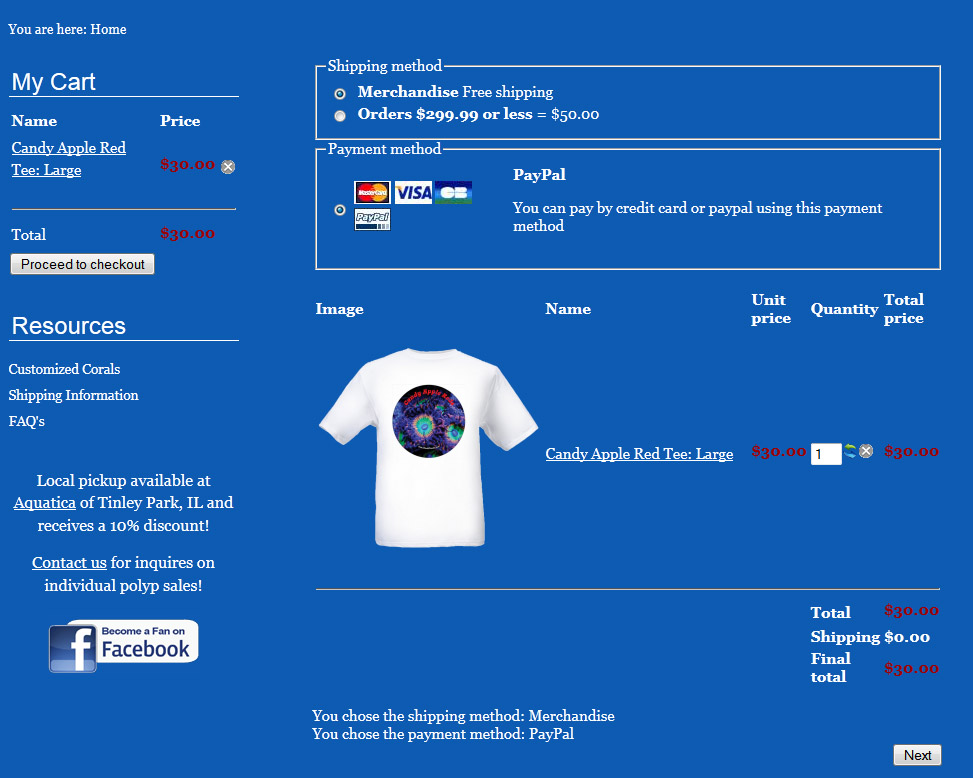 I have a website and the guy sells salt water corals. He also sells some shirts, posters, magnets etc. The corals are obviously very delicate and require some shipping expenses. Here is what I am trying to do.