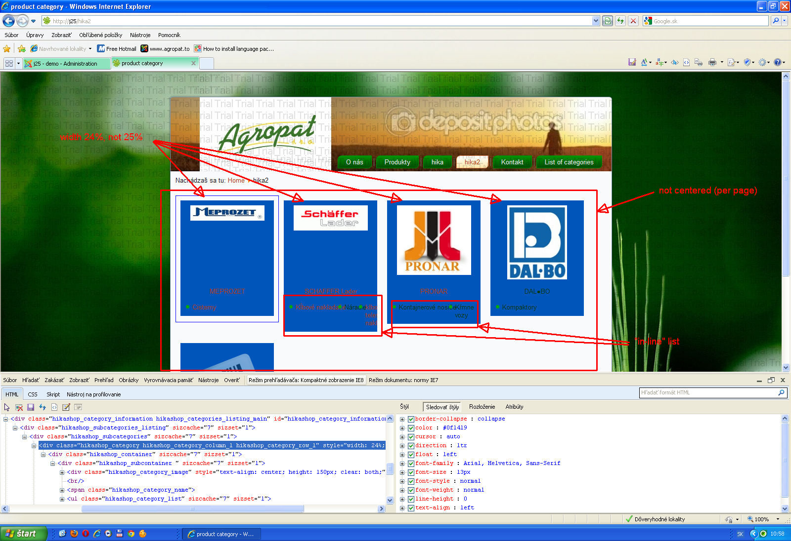 1. When I have on page eg. 4 category lists (div style) side-by-side, then width of them is not 25%, but only 24% and this "list" is not centered (pic.1) (I need to be centered). So, category list is "in-line" no 1 category per line.