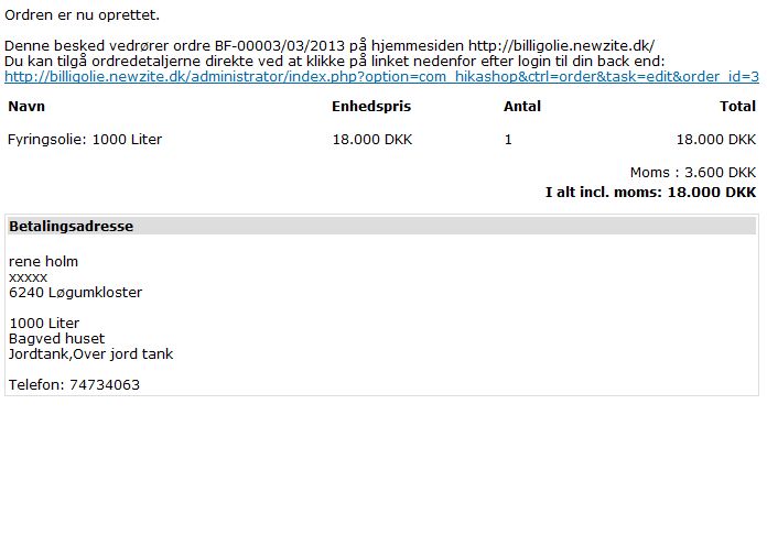 }I have now testet the billing and delevering address. It's not showed in the the admin recived.