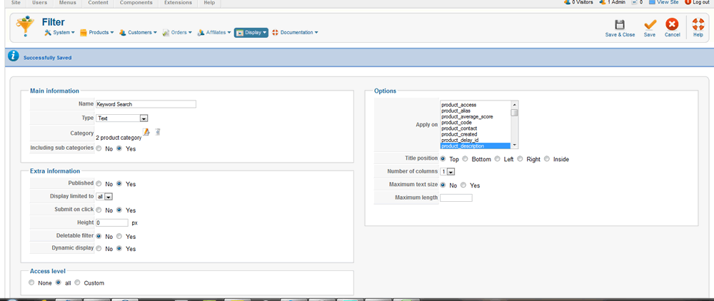 Second, so I set it up a filter to search by keywords. And I selected my umbrella category for all store products. And I set the parameters to include all sub elements. And then that didn't work. Some pages went into sort of an endless loop with the filter module appearing multiple times at the top. And no results shown at all. This was probably because the click had a category with sub-categories. And the module displayed at each category instance. Correct?