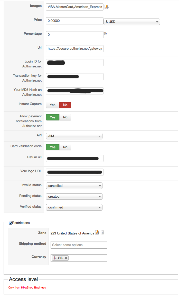 I am using authorize.net plugin for payments. I've attached a screen capture with settings.
