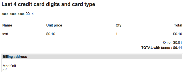 the last 4 digits (xxxx-xxxx-xxxx-0000) from credit card and type of card (visa, mastercard...)