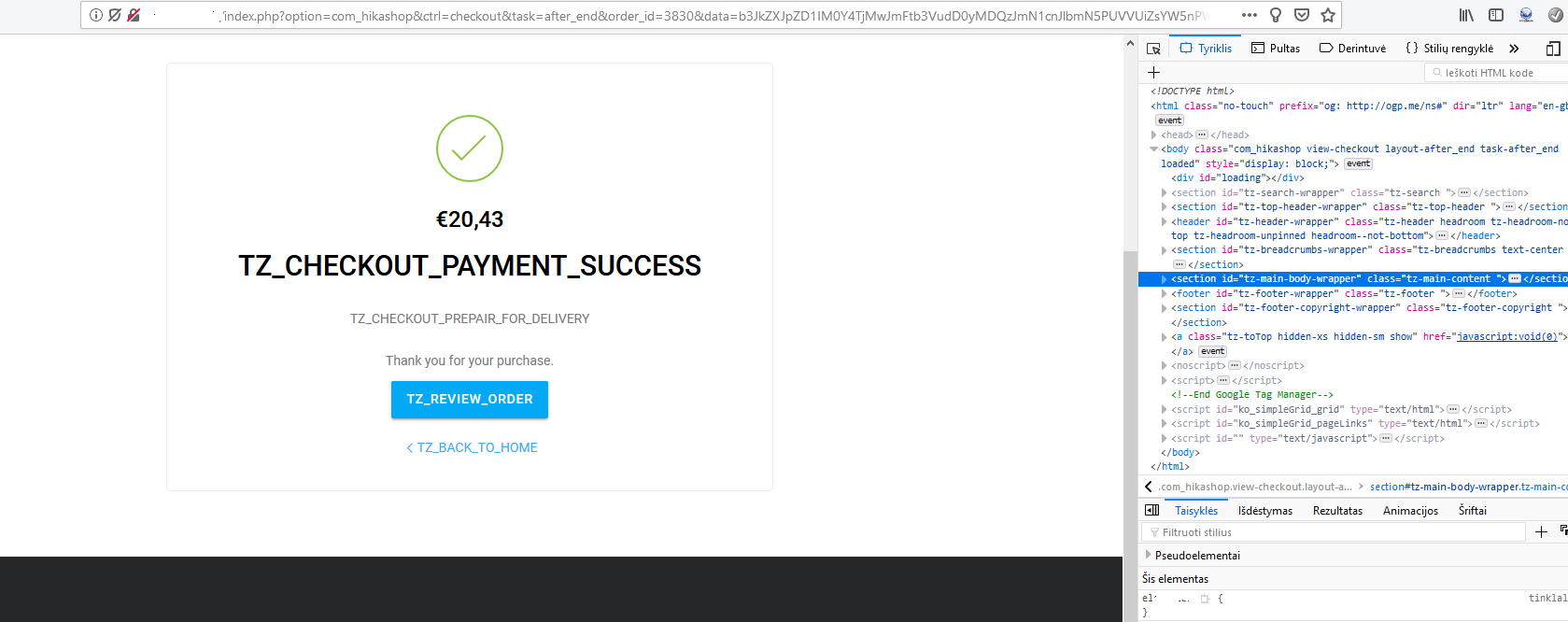 However after changing payment method and using payment like paypal or paysera, after succesfull payment redirect, thank you page is not displayed. It seems that layout after_end is missing here....