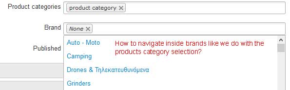 ),This code defines how the brands selector works. Change the mode to "tree" instead of "list" and it will display like the categories selector.