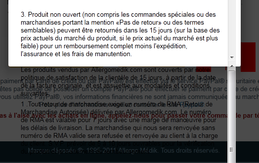 J'ai un petit problème lorsque les clients clique pour faire afficher les conditions générales de ventes dans le panier.