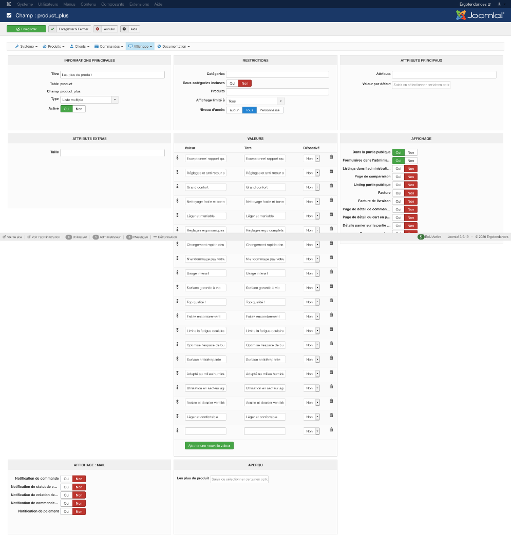 Je reviens sur mon problème car si les caractères spéciaux peuvent poser problème dans les champs personnalisés, j'ai donc mis des underscores dans les valeurs des champs :