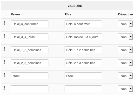 Car "Valeur", c'est bien la référence unique pour le nom du champs et Titre la valeur textuelle à afficher ?