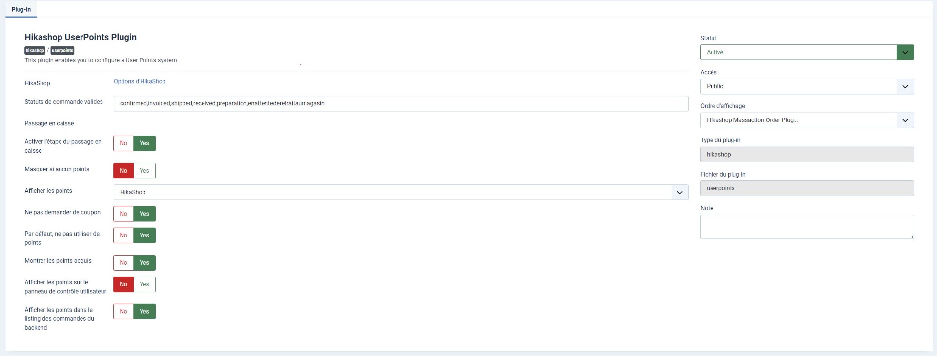 Je pense qu'il y a une erreur dans le fichier plugins/hikashop/userpoints/userpoints.php
