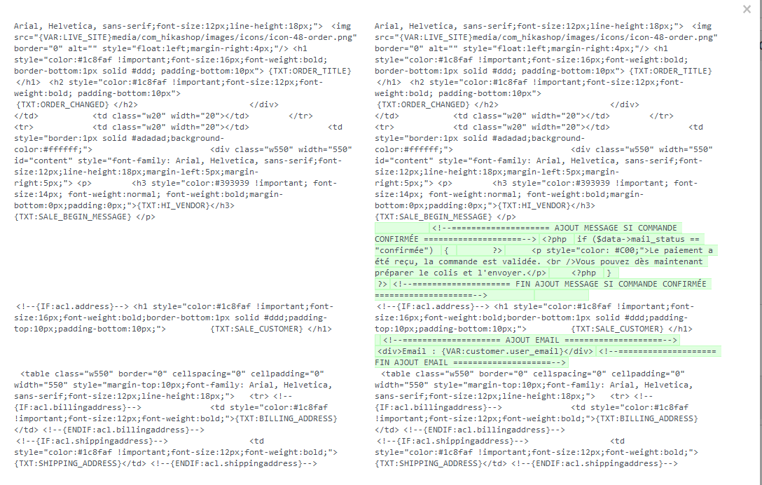 Les seules modifications sont celles ci-dessous, notamment pour ajouter l'email du client :