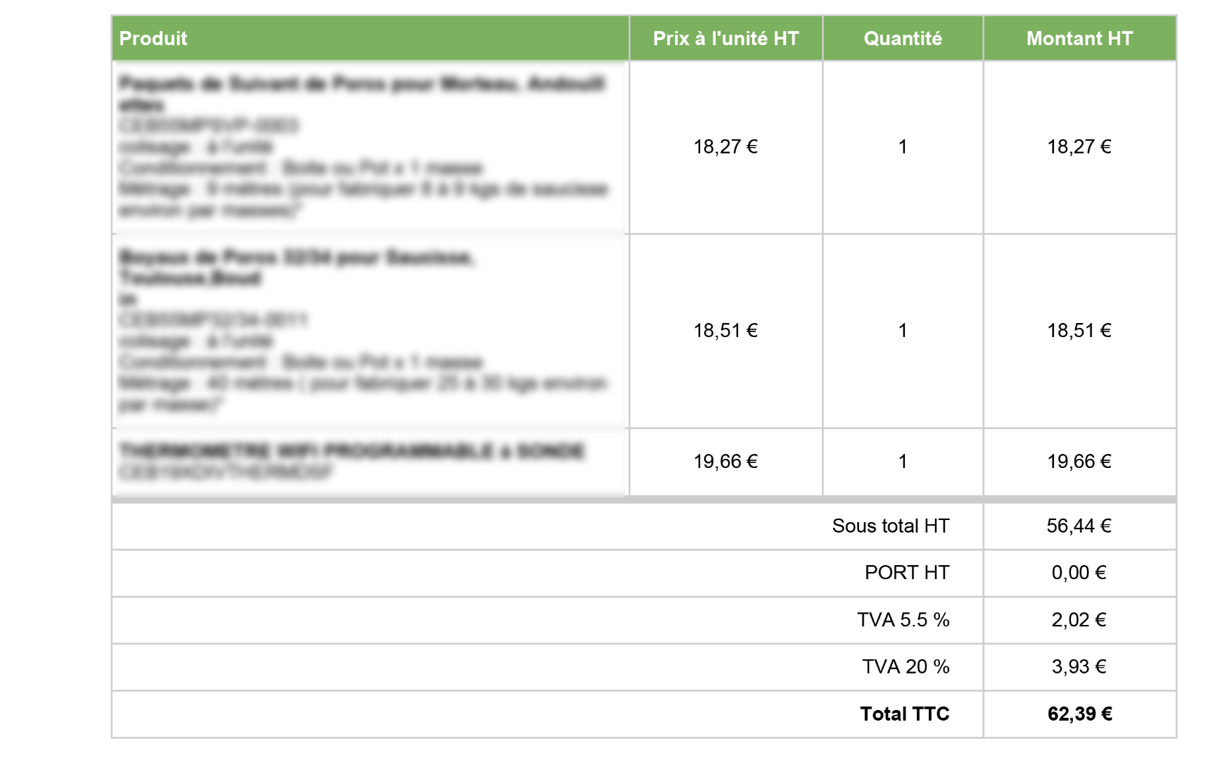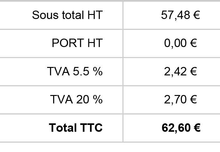 Après désactivation du plugin, la TVA apparait mais sans le détail alors qu'il y a un produit à 5.5% et un autre à 20%.