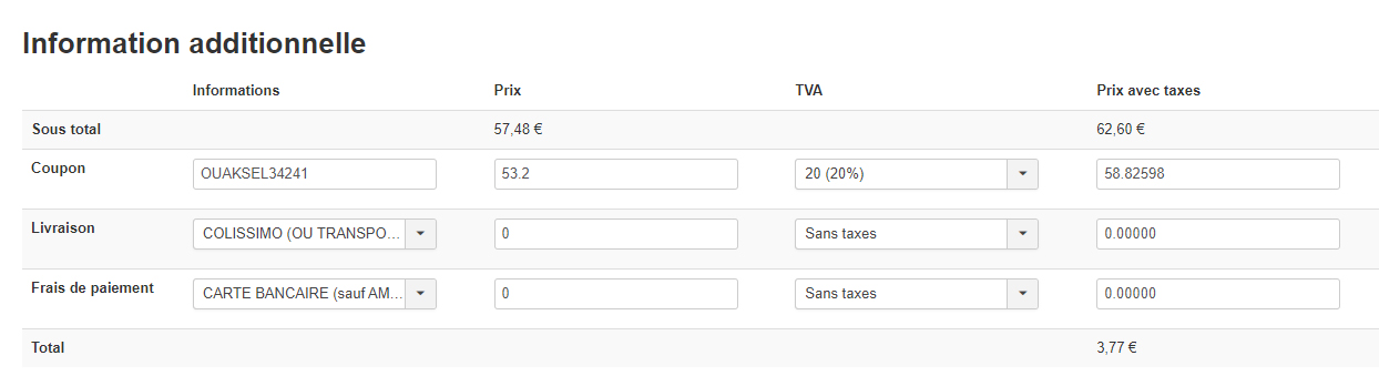 Et sans le plugin on voit que la TVA est négative ce qui expliquerait pourquoi elle ne s'affiche pas avec le plugin :