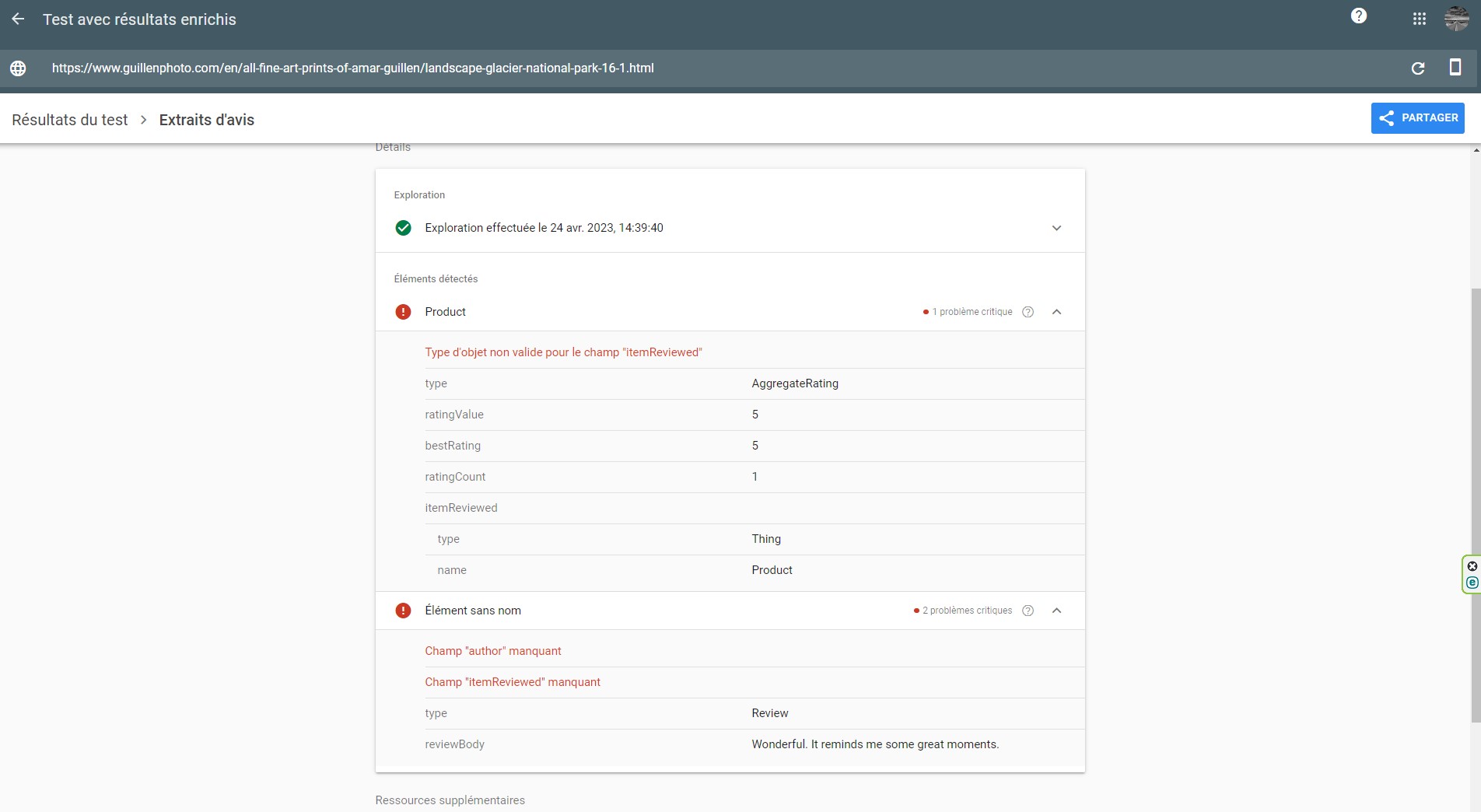 Vous avez tout à fait raison. Le problème vient de Google Structured Data que j'utilise pour créer des snippets pour mes articles. Quand il est activé, l'erreur se produit sur les pages des produits avec des commentaires ou des votes.