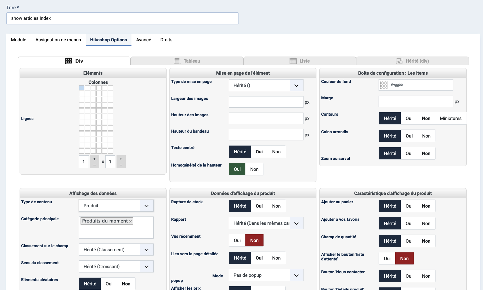 Maintenant, soucis de css, soucis d'appel de produit, soucis de redistribution de produits dans le slider? Je n'en ai aucune idée mais il y a clairement un soucis. j'ai un défilement de produits suivi d'éléments affichés en table.