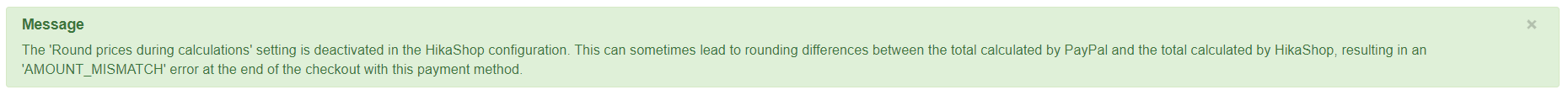 2) Il y a aussi une bande verte avec un message indiquant une possible différence entre les prix affichés en boutique Hika et la plateforme Paypal. Ce qui pourrait poser problème. Ai-je des raisons de m'en soucier ou pas forcément ?