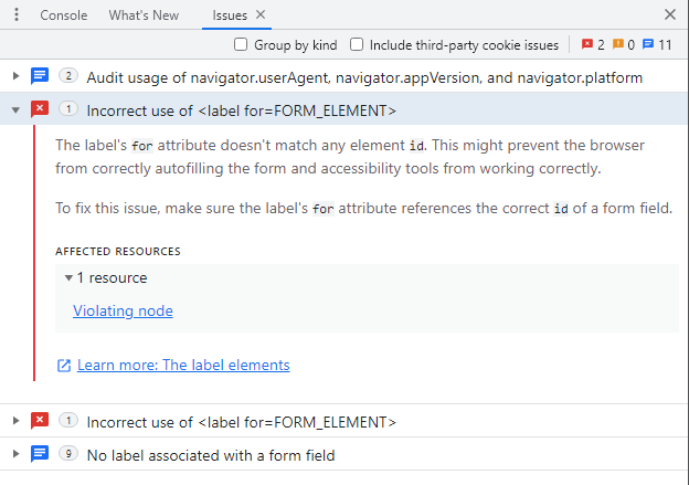 Avant la connexion : Incorrect use of <label for=FORM_ELEMENT>