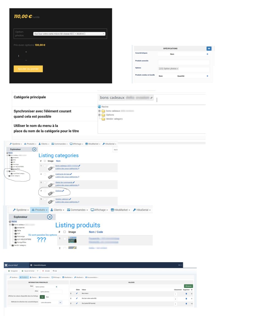 Après analyse il semblerait bien que vous aillez utiliser la "catégorie" Brand pour créer votre catégorie Options, ce qui ne vous permet pas d'utiliser de façon classique vos produits à partir des configurations backend (pour les associer en options à vos produits principale par exemple).