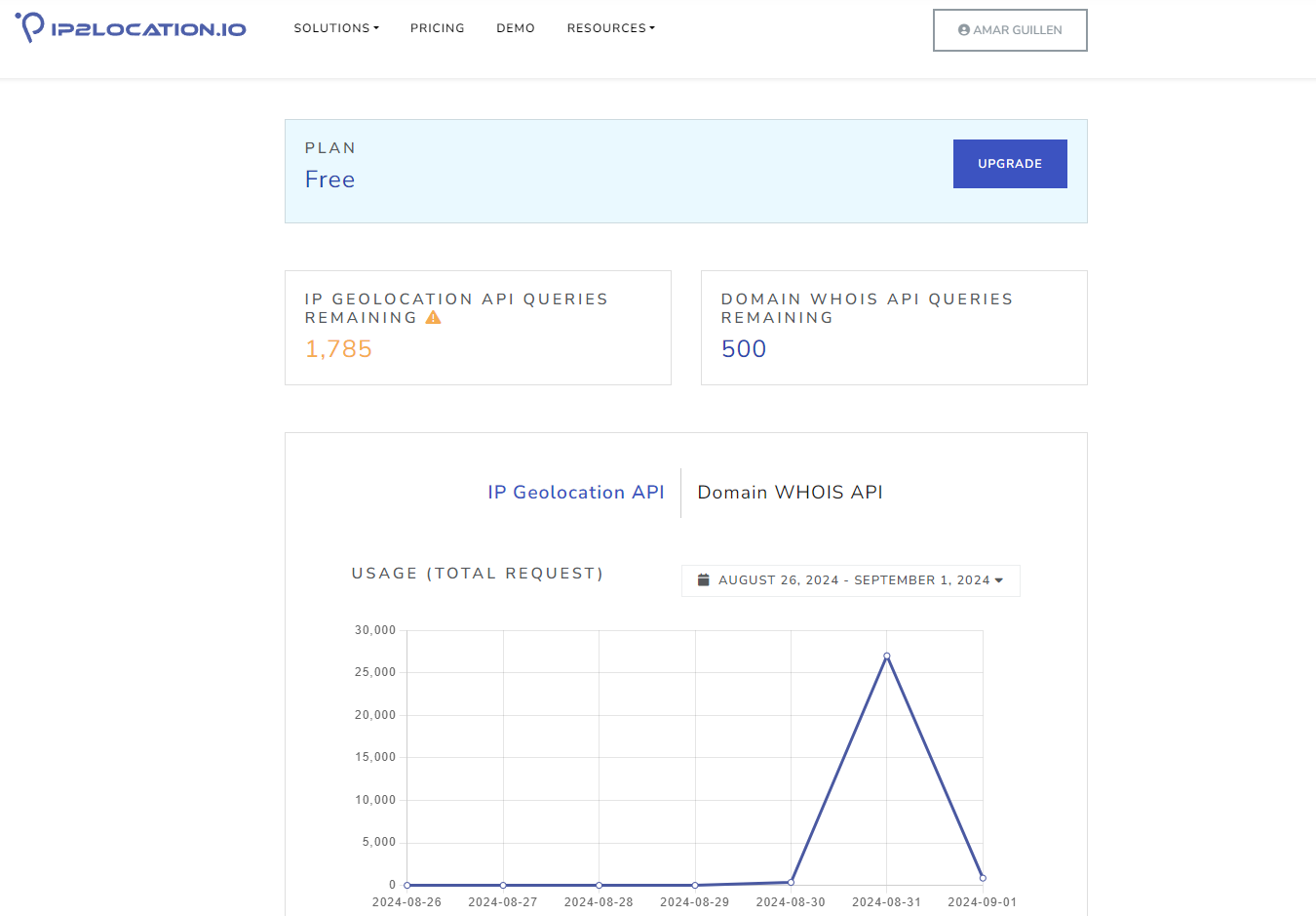 Je ne sais pas. Avez vous la possibilité d'avoir un historique des requêtes à l'API dans l'interface de ip2location.io ?