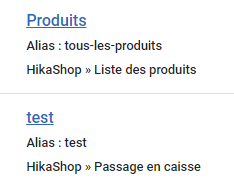 J'ai mis checkout dans mes explications pour simplifier mais voici comment sont réglés les paramètres SEO hikashop :
