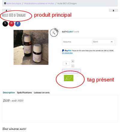 Pour voir le problème : à partir du lien que j'ai indiqué en url privée, on voit le logo vert "BIO", mais il disparaît en choisissant une variante.