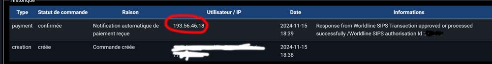 Par exemple, si vous avez le message "status already there !", alors cela indique que l'option "status vérifié" dans la méthode de paiement est sur "créée" au lieu d'être sur "confirmée" et donc le plugin n'a rien à faire car le statut de la commande est déjà celui demandé dans les options de la méthode de paiement.