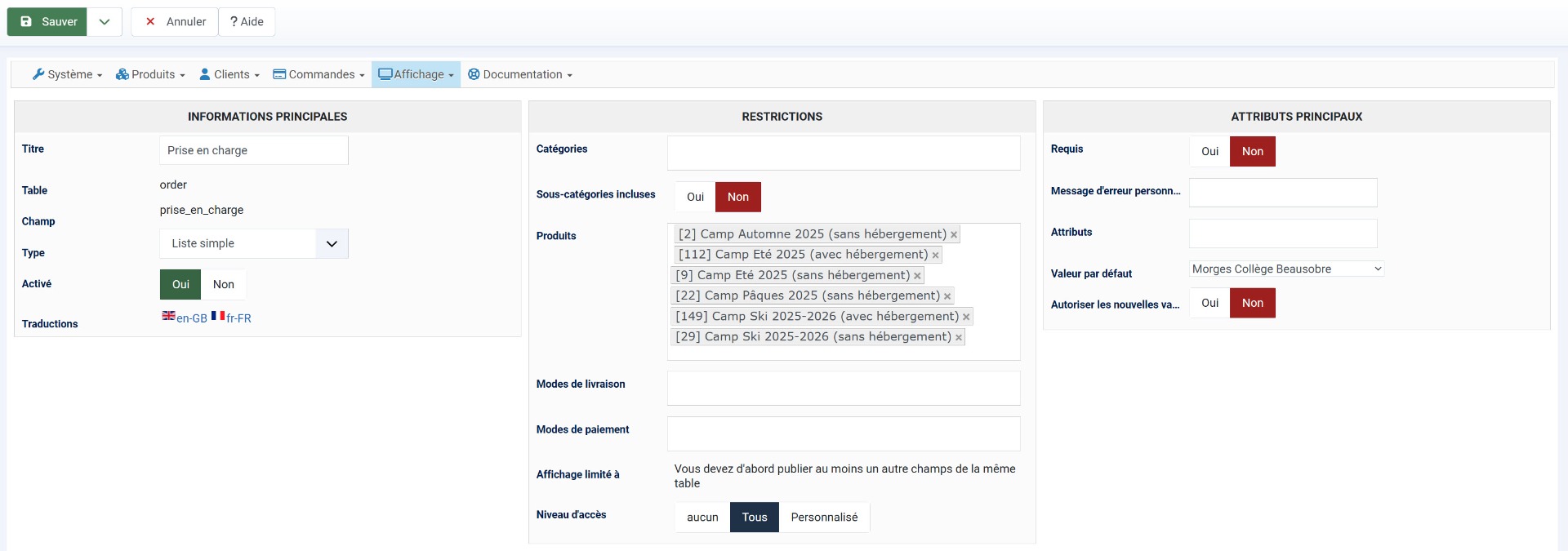 Donc il faudrait que je refasse comme au début pour pouvoir gérer en fonction du produit, car là avec la table order, ça doit fonctionner ?