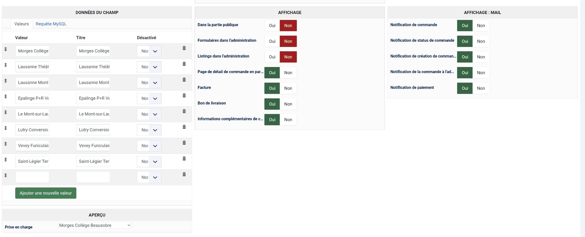 Ainsi, "Choisir" sera sélectionné par défaut, et si l'utilisateur essaie de valider sans sélectionné autre chose dans le champ, cela sera refusé avec un message d'erreur car la valeur de choisir est vide et que le champ est requis.