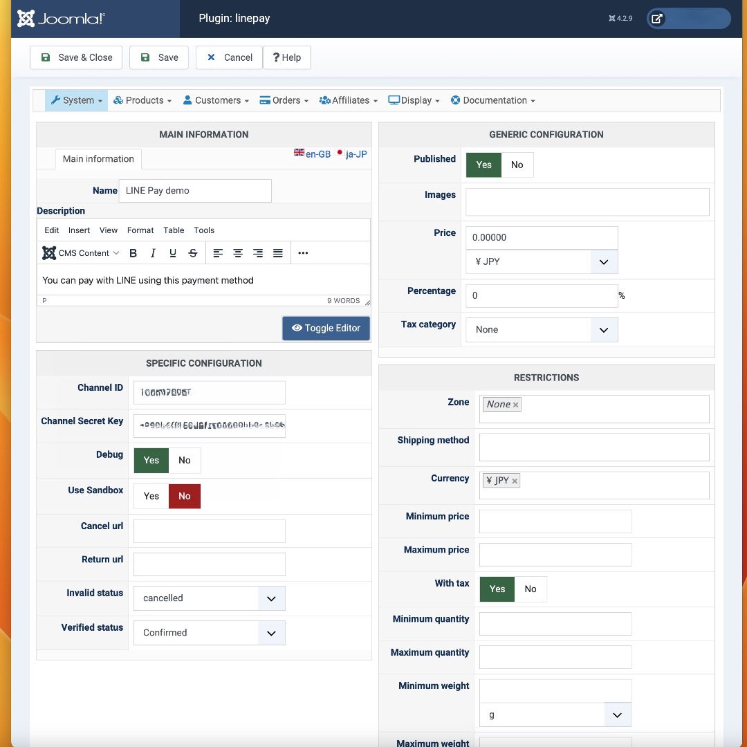 We did test the plugin with a sandbox account on our end and it worked fine but it was not with the japanese LINE Pay.