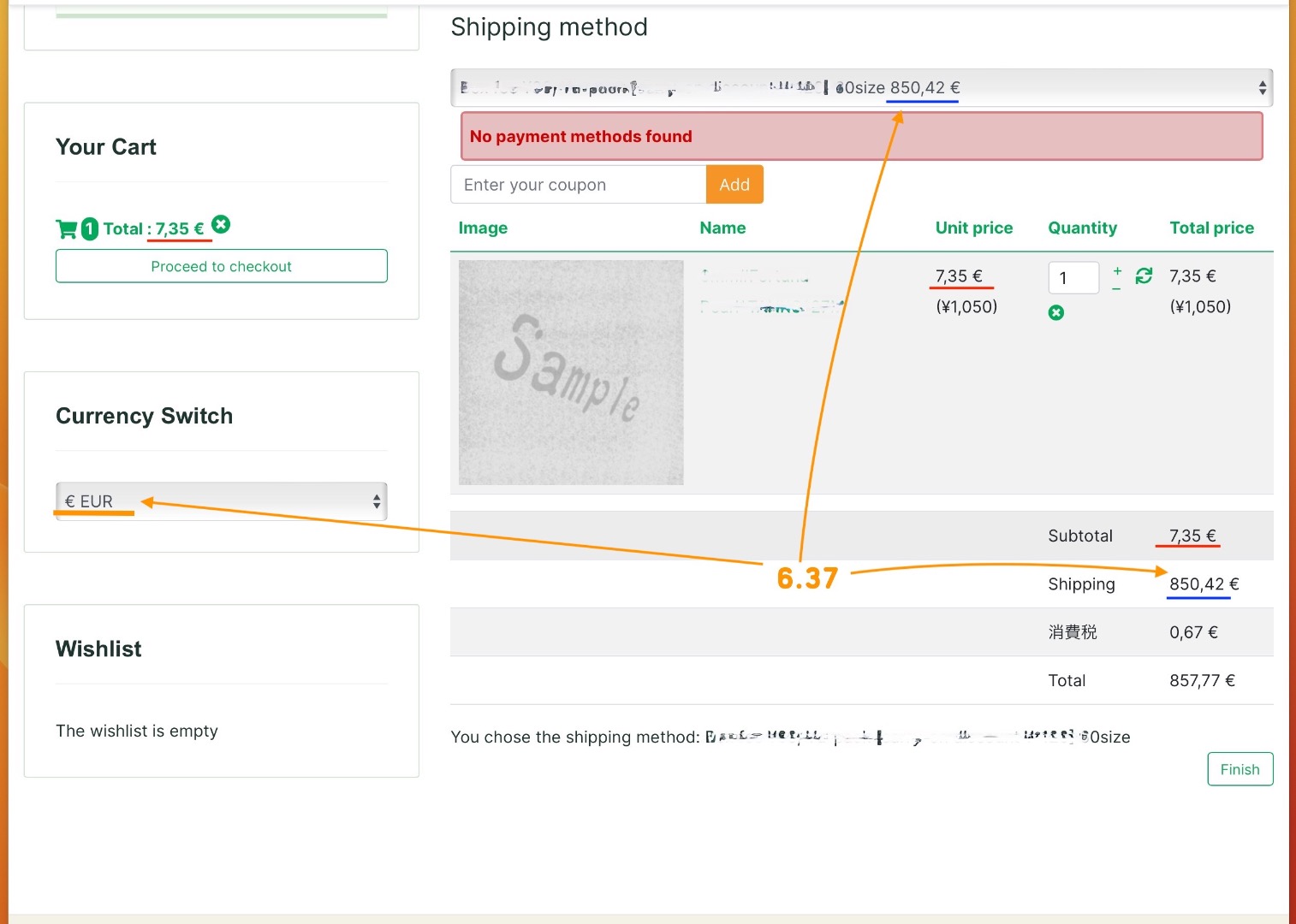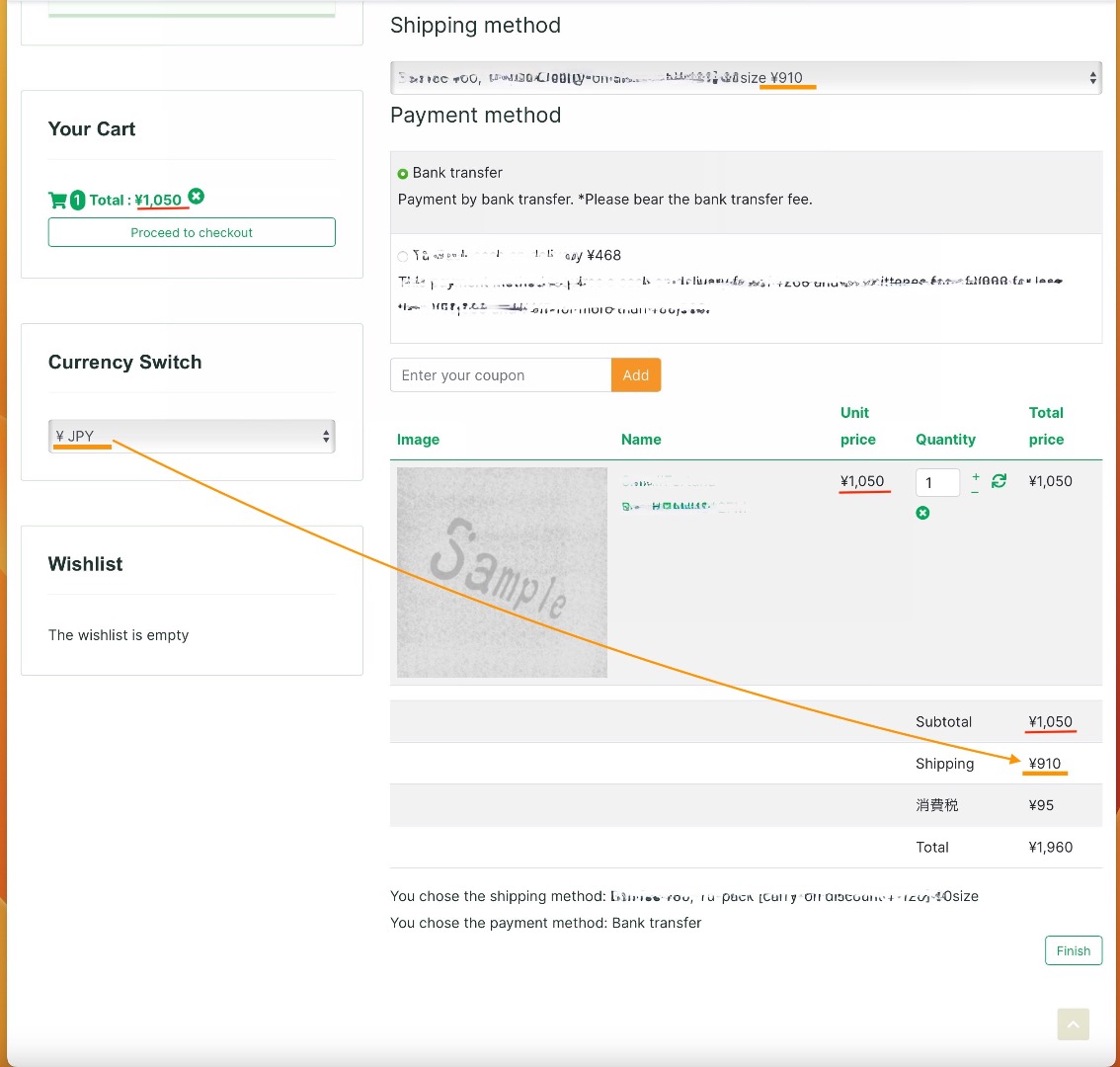 I tried to reproduce the problem on my end with the same setup: the 3 same currencies, JPY as the main one, the exchange rates like you, a shipping method with a price in JPY, and using the currency switcher on the checkout.