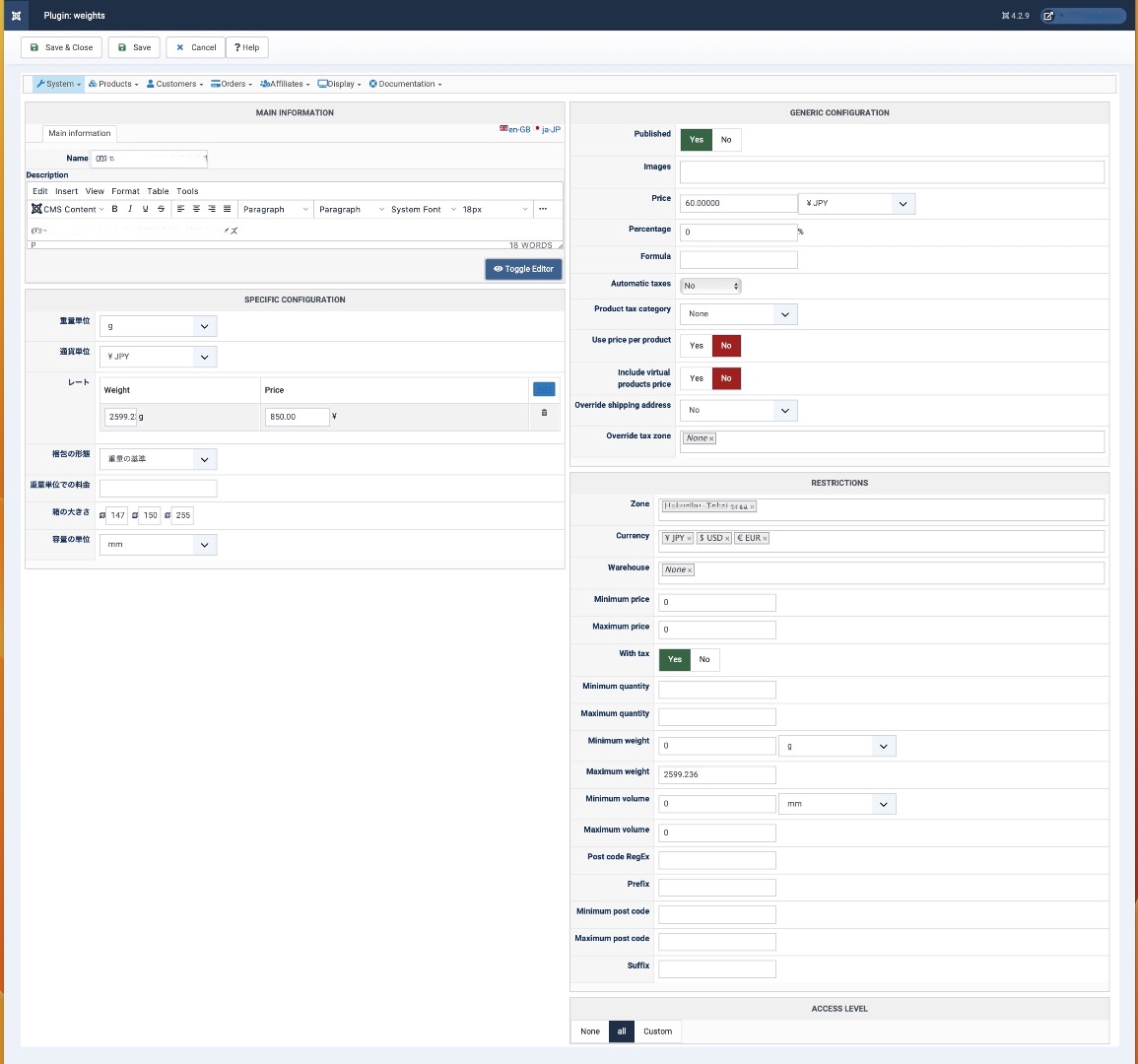 The only thing I didn't had is the weights plugin because it's developed by a third party developer.