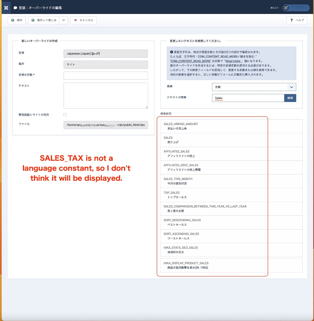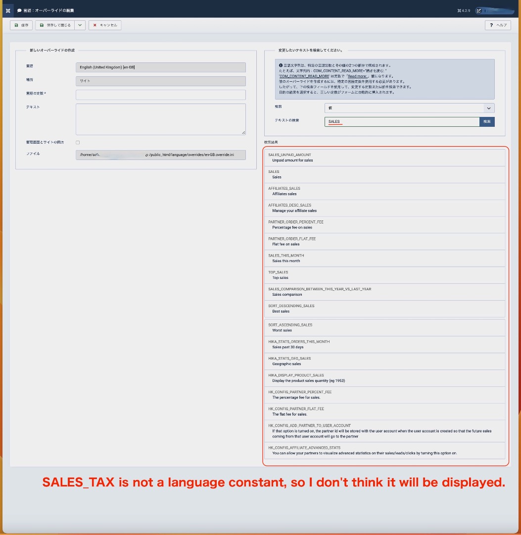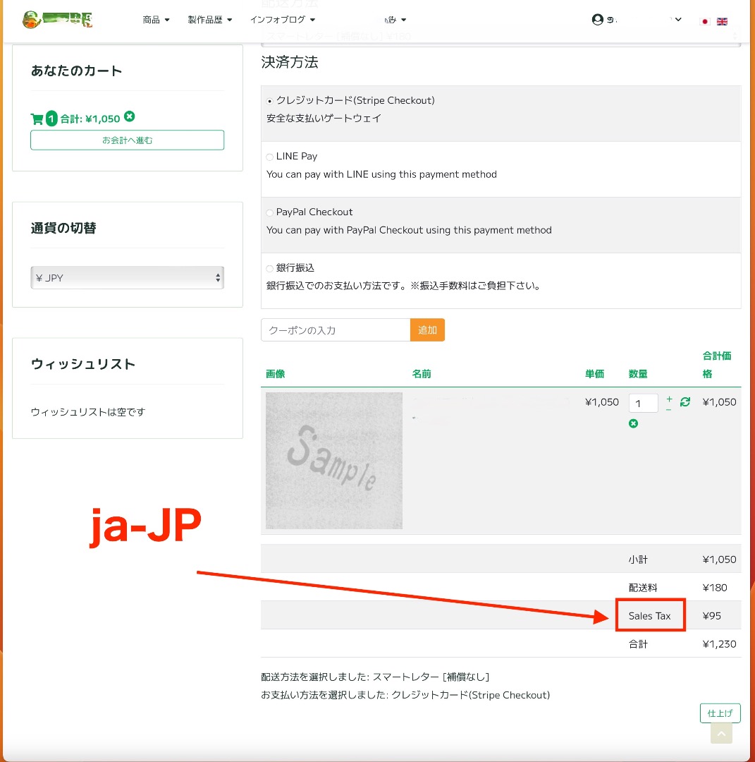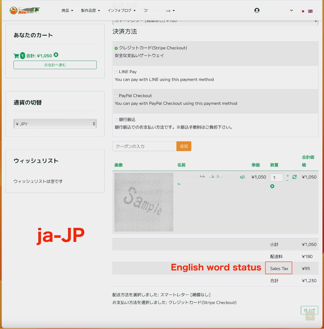 英語版での決済にて消費税の単語が日本語