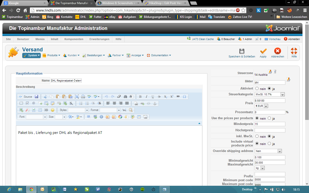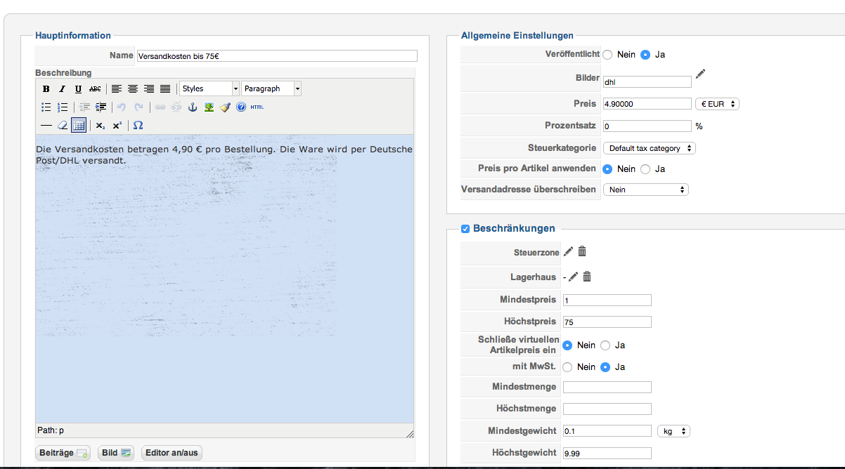 - Für manuelle Liefermethoden muss "Trotz fehlenden Gewichtsangaben versenden" auf "Ja" stehen... ist das so?