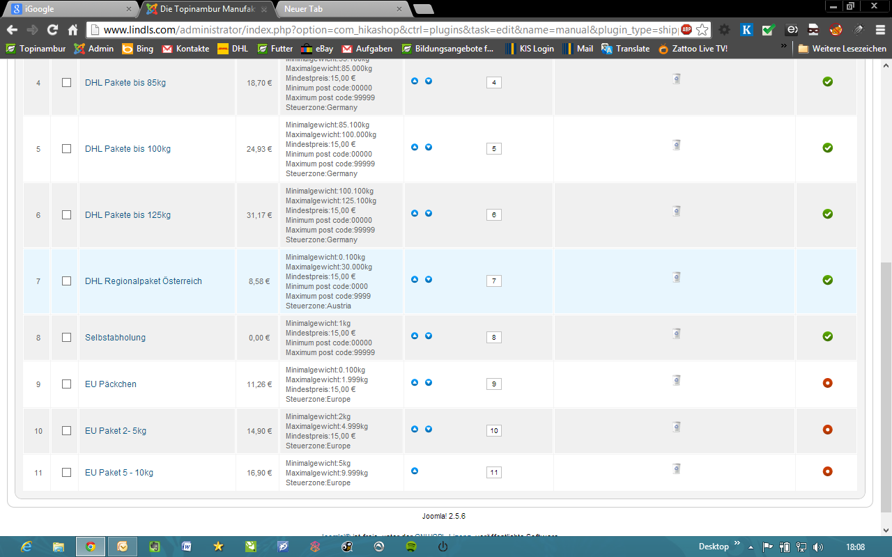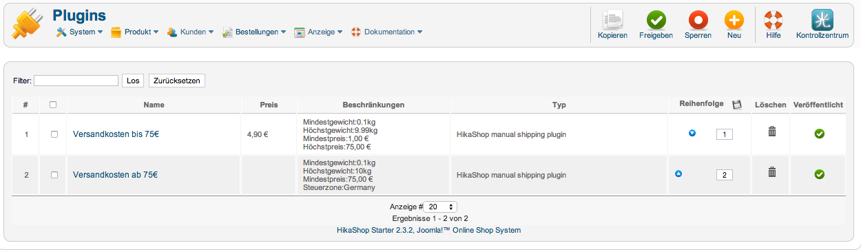 - Gibt es Produkte, oder eine Bestellung, die 10kg überschreiten? Das Höchstgewicht ist bei beiden Liefermethoden 10kg (oder 9.99kg), wenn dann was drüberliegt, gibt's u.U. keine passende Liefermethode, die angezeigt werden kann.