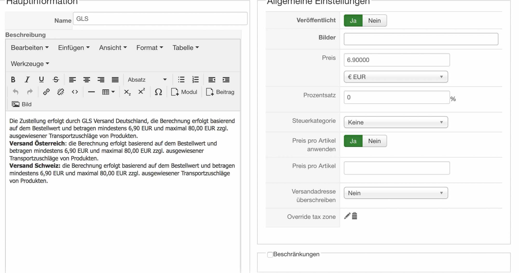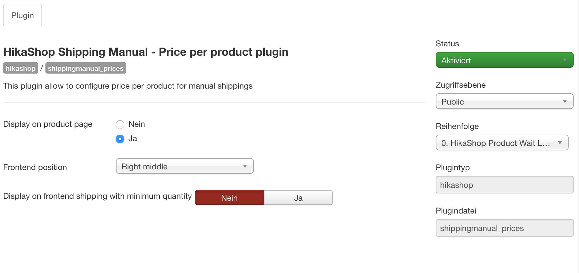 Nur noch ein grundsätzlicher Hinweis, quasi der Vollständigkeit halber: das "HikaShop Price per product plugin" ist ein Weg, aber dann werden Versandkosten u.U. für jedes einzelne Produkt berechnet und, wenn jemand mehrere ordert, im Checkout womöglich entsprechend aufaddiert. Wenn es das ist was du willst, dann gut so. Ansonsten gibt's auch andere Möglichkeiten.