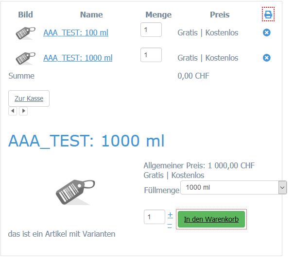 Im Warenkorb dann zeigt es mir keinen Preis sondern "Gratis | Kostenlos"