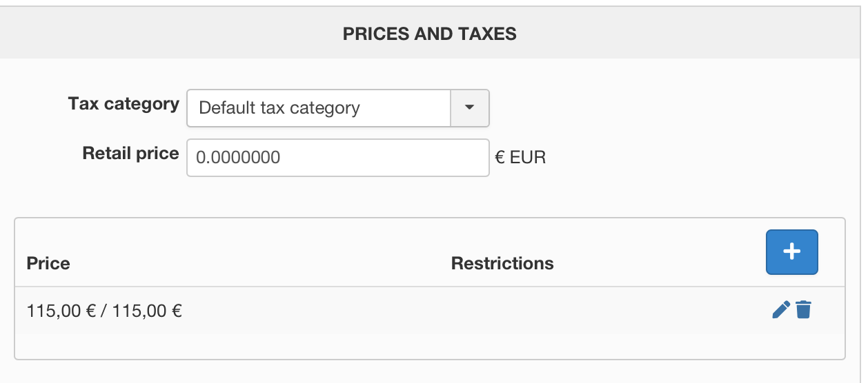 Also, mal das dicke, fette "+" klicken, und dort den Preis eingeben, sowohl für Hauptprodukt wie auch für Varianten. Dort erschließt sich dann auch die Logik mit MwSt.