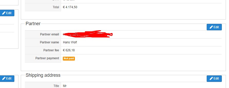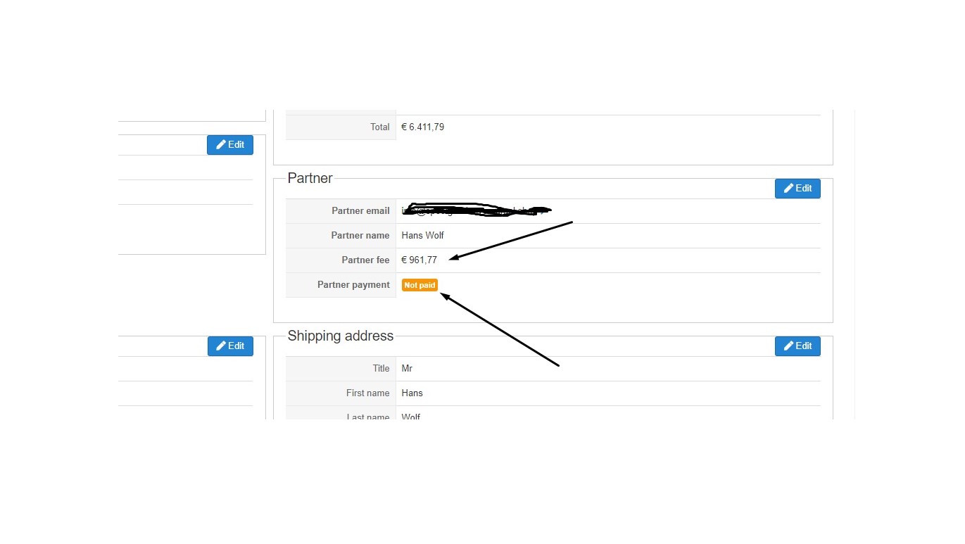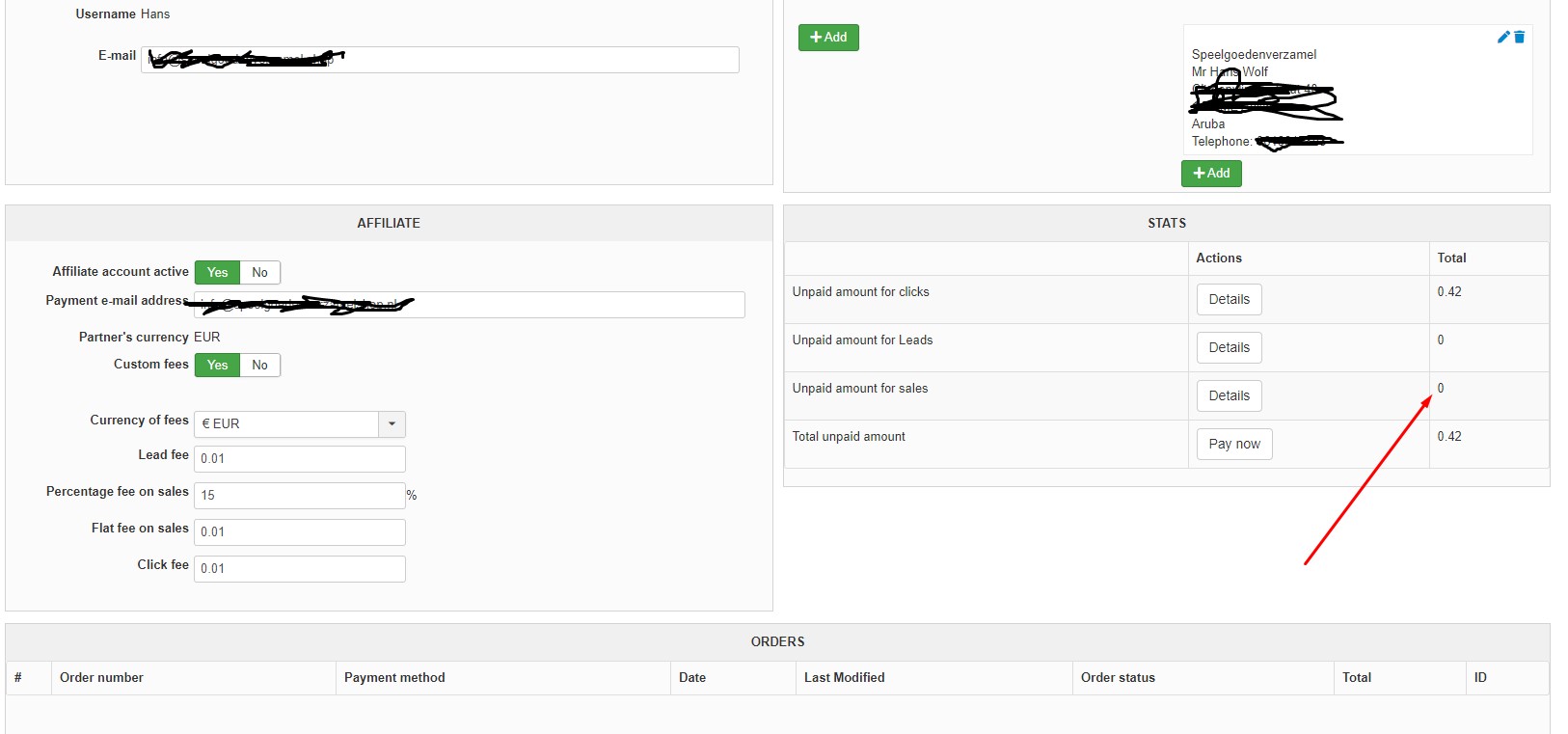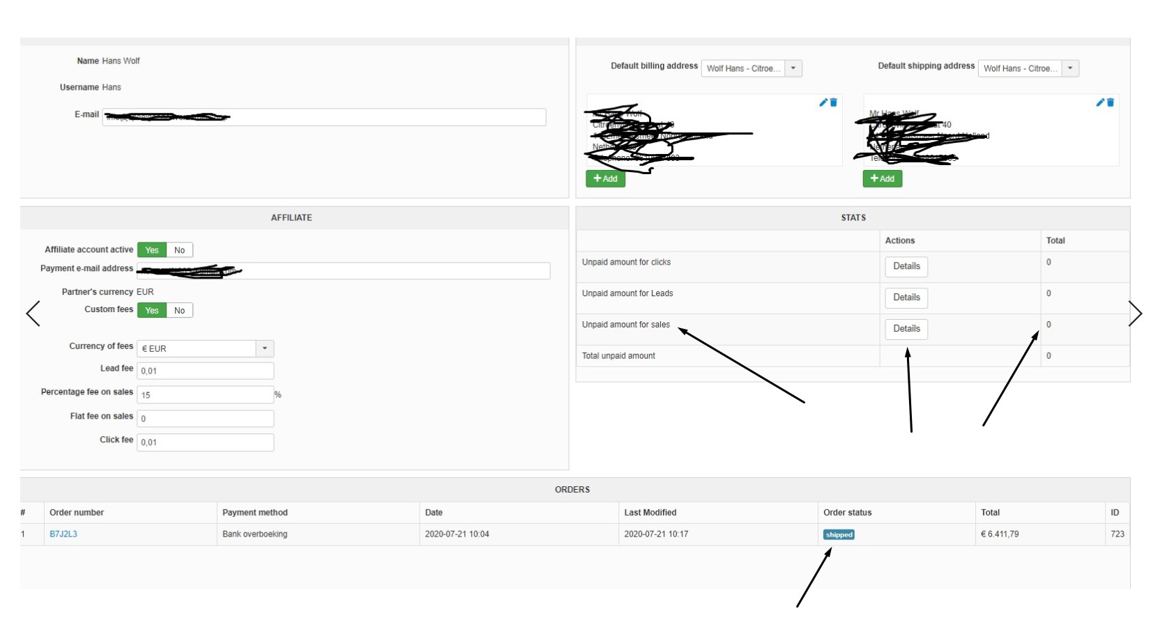 Also, I don't have a screenshot of all the details of the order but it seems that the partner and the customer of the order is the same user account. However, you have the "no self affiliation" setting turned off in your configuration. So in that case, the affiliation will be discarded if the partner is the same user account as the customer of the order.