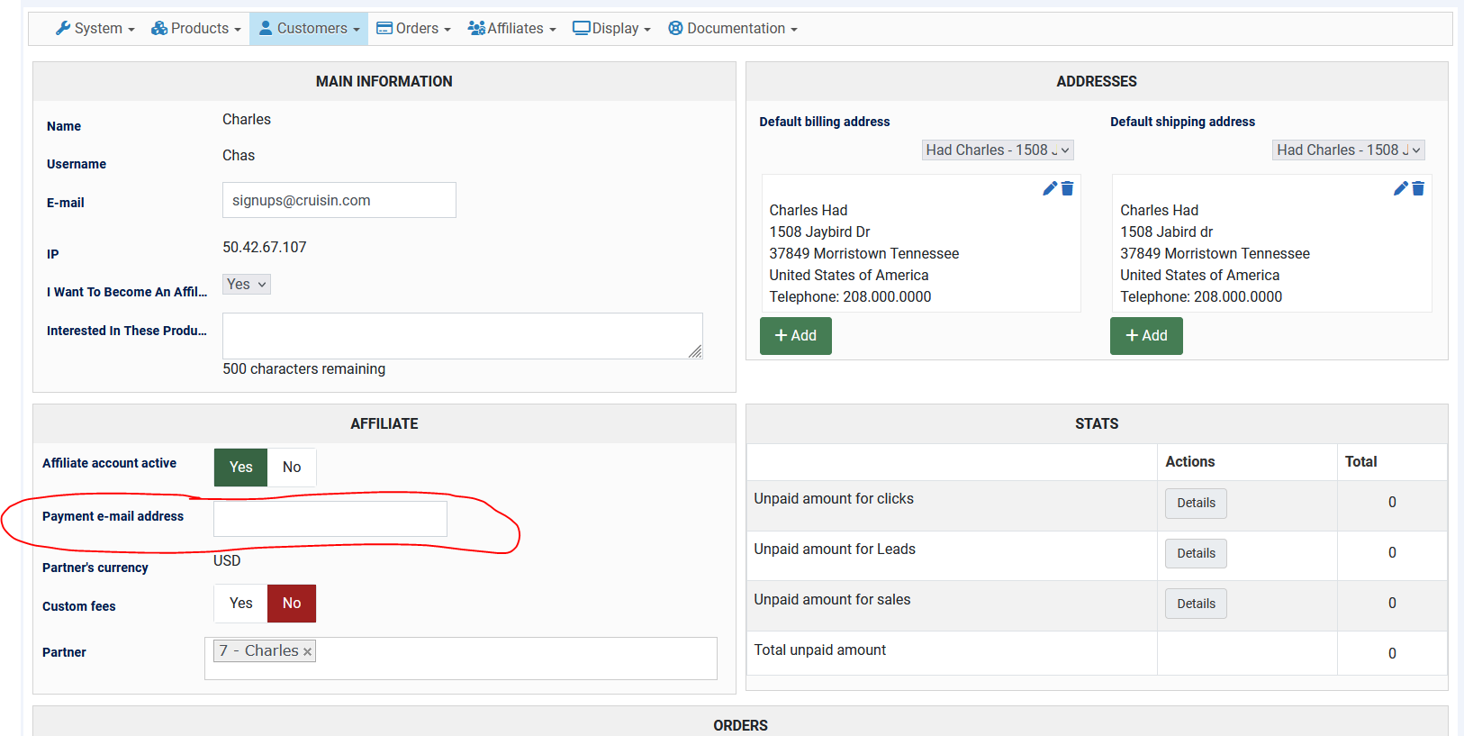 Then, activate the "affiliate account active" setting in the user, like in your screenshot.