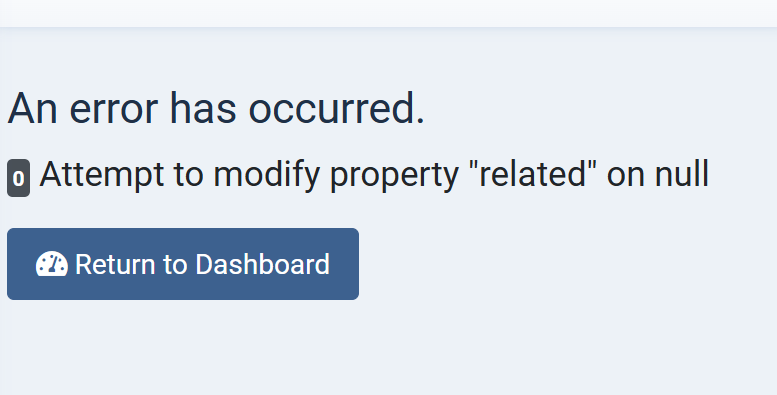 Yes, error is An error has occurred. 0 Attempt to modify property "related" on null
