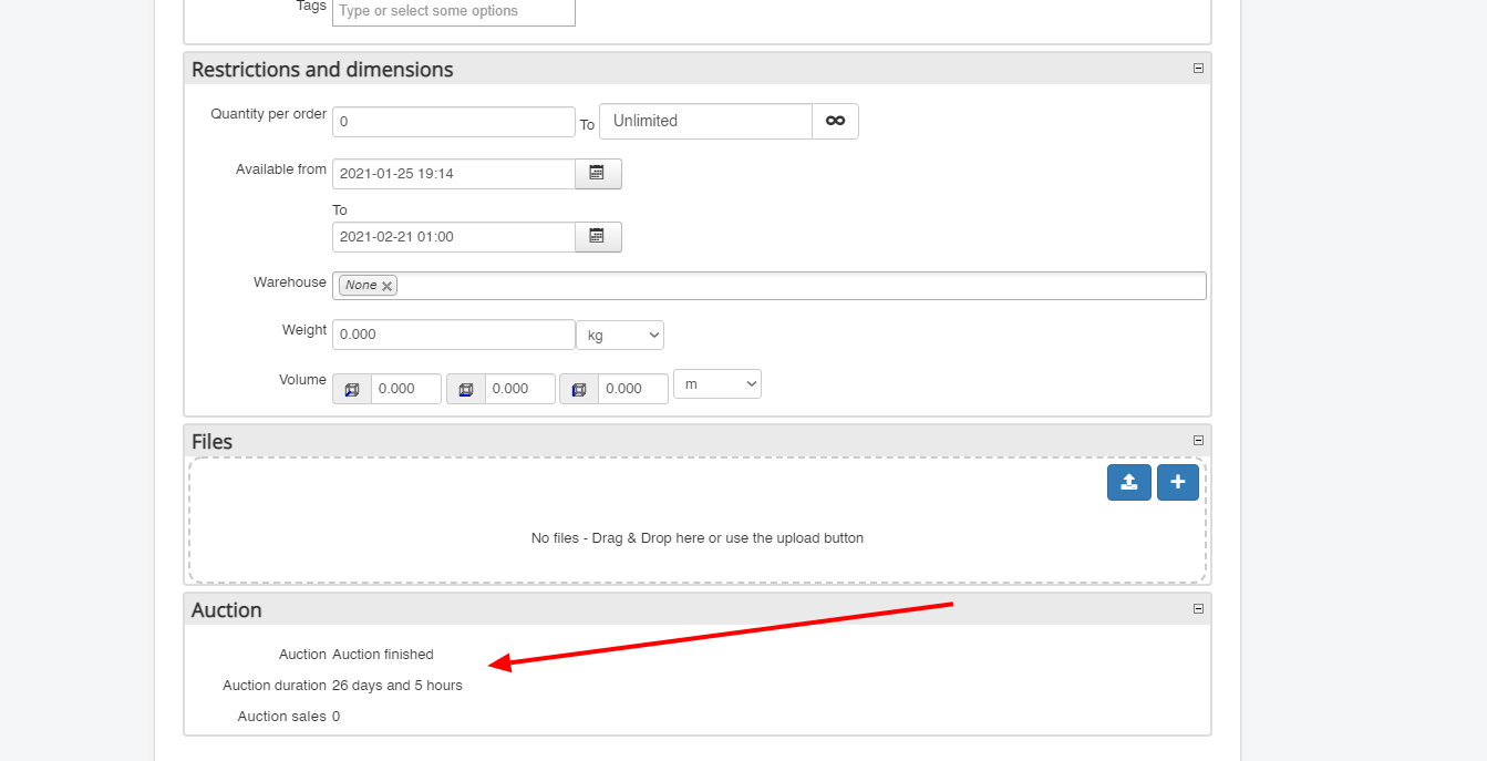 - Change the value of the "product_auction" field to 0