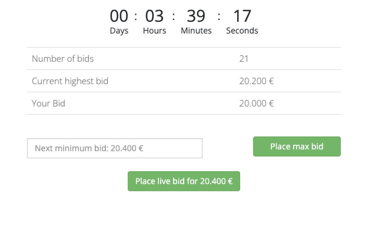 Regarding the idea of a second box (live bid vs. maximum bid): in Vickrey mode, every bid is already a maximum bid by design and the system automatically determines the winning price based on the second-highest bid plus the increment. So a second input field would be redundant since there's only one value to enter: the most you're willing to pay. The system handles the rest, exactly like proxy bidding on eBay.